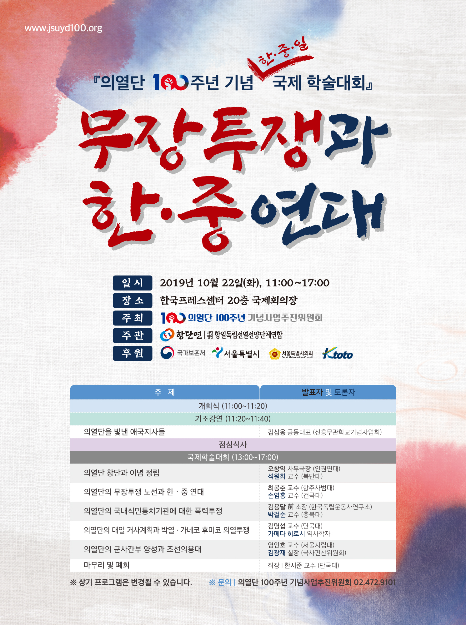 주 관 : (사)항일독립선열선양단체연합